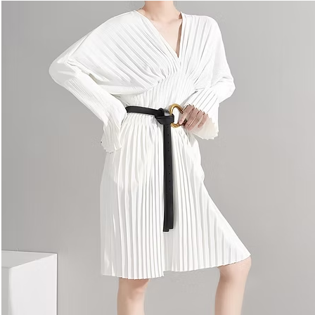 Sakiya Pleated Long Sleeve Shirt Dress - White